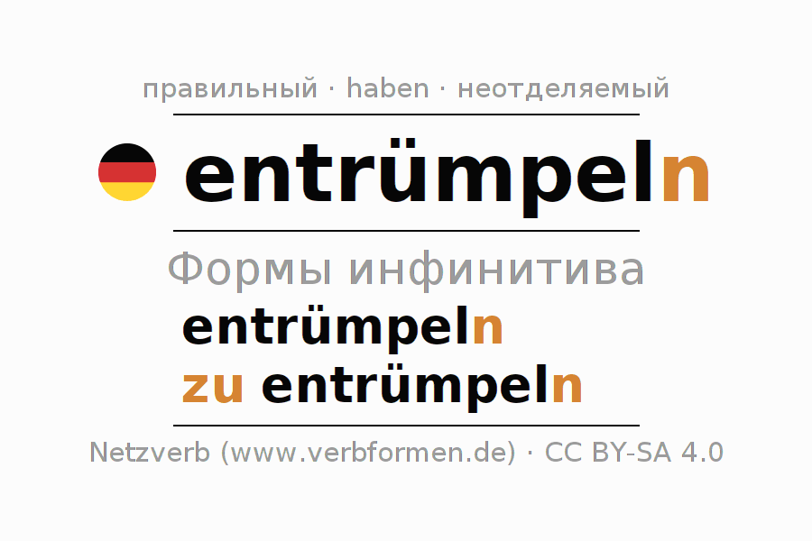 Этот глагол entrümpeln полностью спрягается во всех лицах и числах Инфинитив Презенс Перфект.