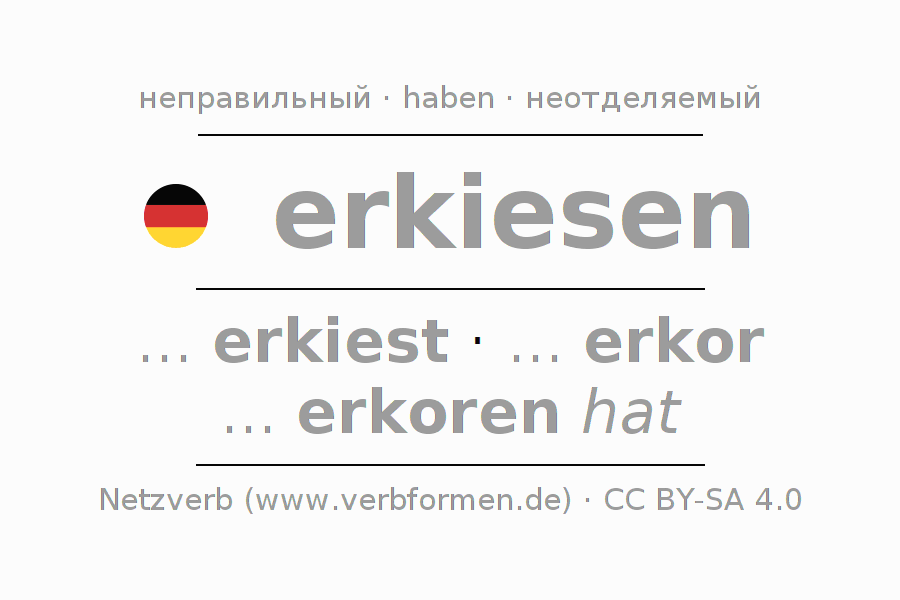 Этот глагол erkiesen полностью спрягается во всех лицах и числах Инфинитив Презенс Перфект.