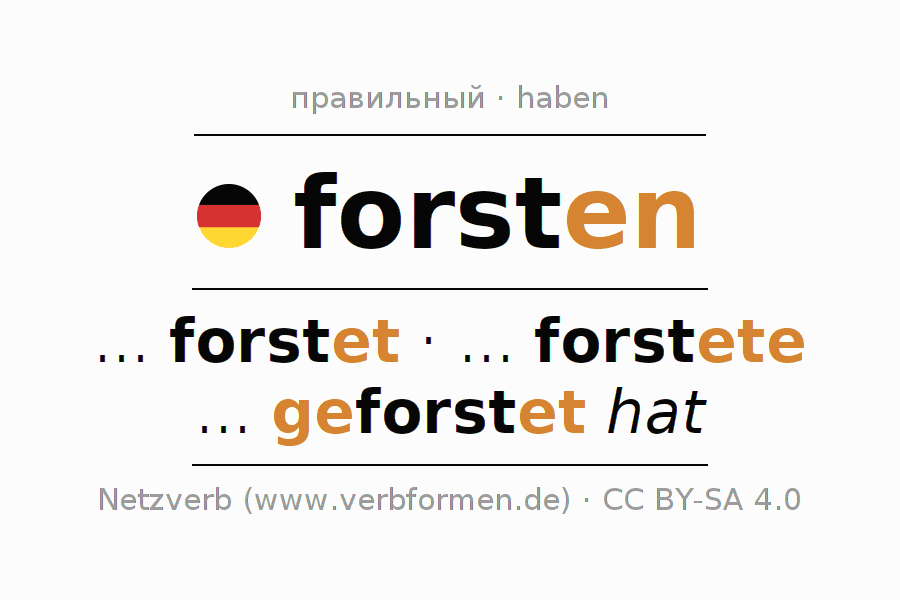 Этот глагол forsten полностью спрягается во всех лицах и числах Инфинитив Презенс Перфект.