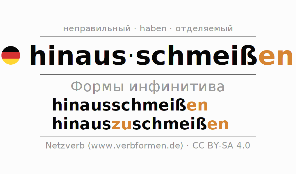 - Образование Инфинитив hinausschmeißen
