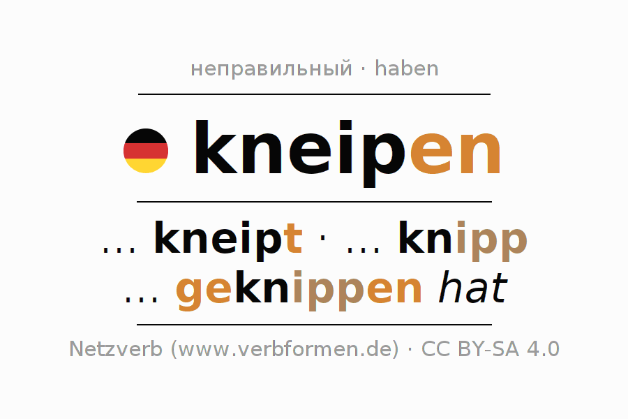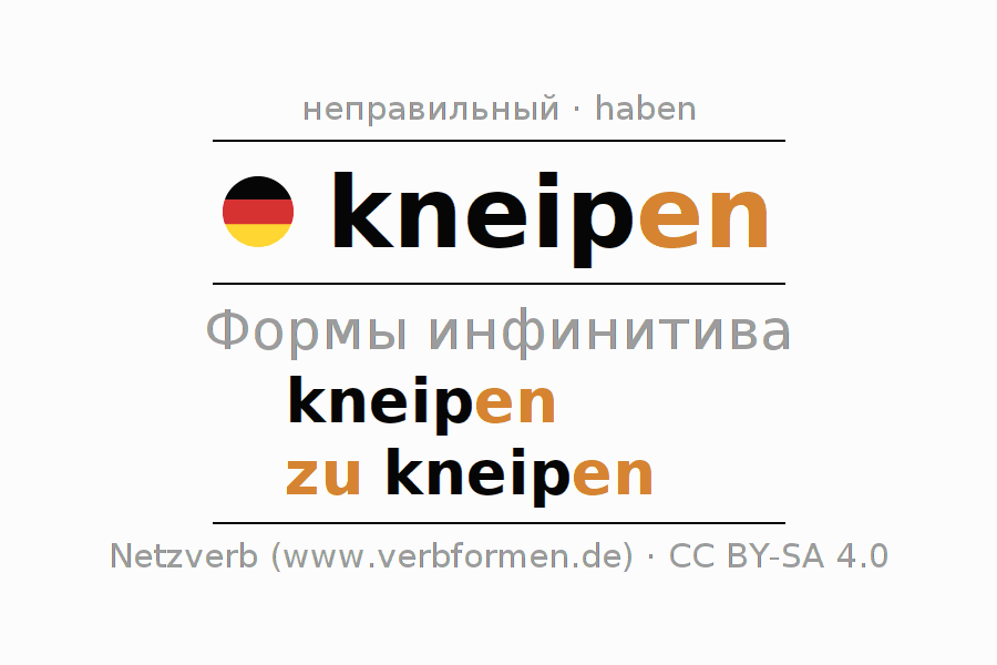 Этот глагол kneipen (unr) полностью спрягается во всех лицах и числах Инфинитив Презенс Перфект.