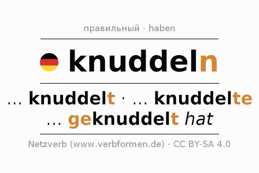 Этот глагол knuddeln полностью спрягается во всех лицах и числах Инфинитив Презенс Перфект.