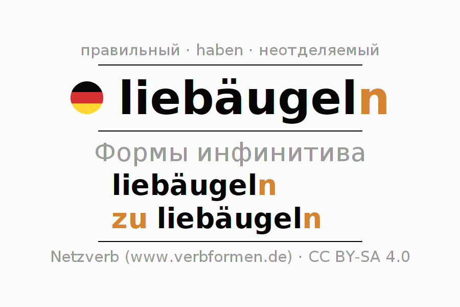 Этот глагол liebäugeln полностью спрягается во всех лицах и числах Инфинитив Презенс Перфект.