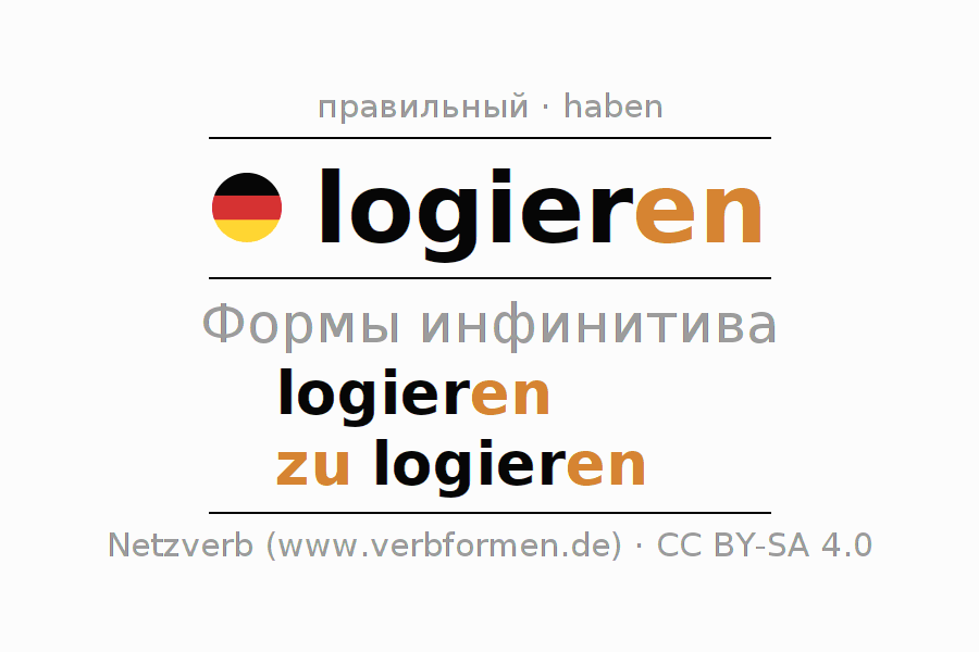 Этот глагол logieren полностью спрягается во всех лицах и числах Инфинитив Презенс Перфект.