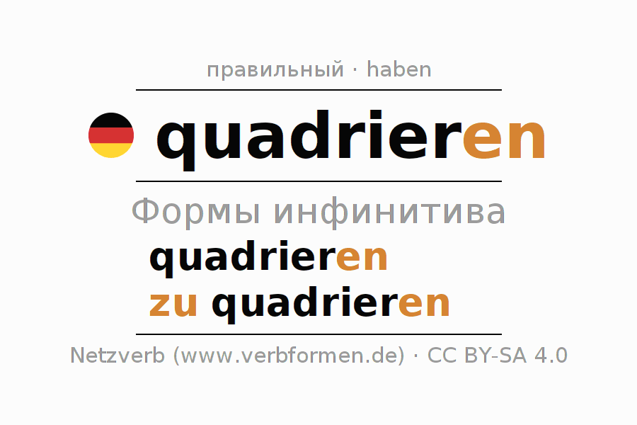 Этот глагол quadrieren полностью спрягается во всех лицах и числах Инфинитив Презенс Перфект.
