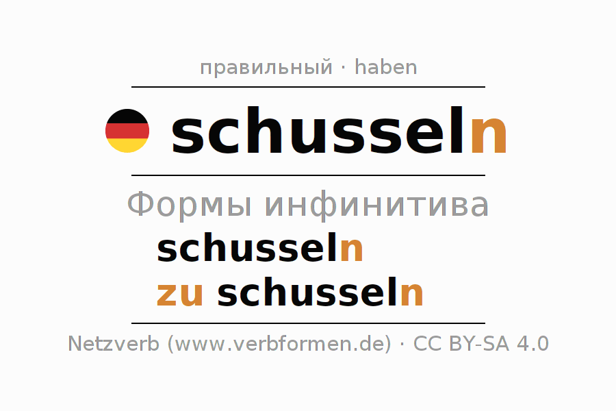 Этот глагол schusseln (hat) полностью спрягается во всех лицах и числах Инфинитив Презенс Перфект.