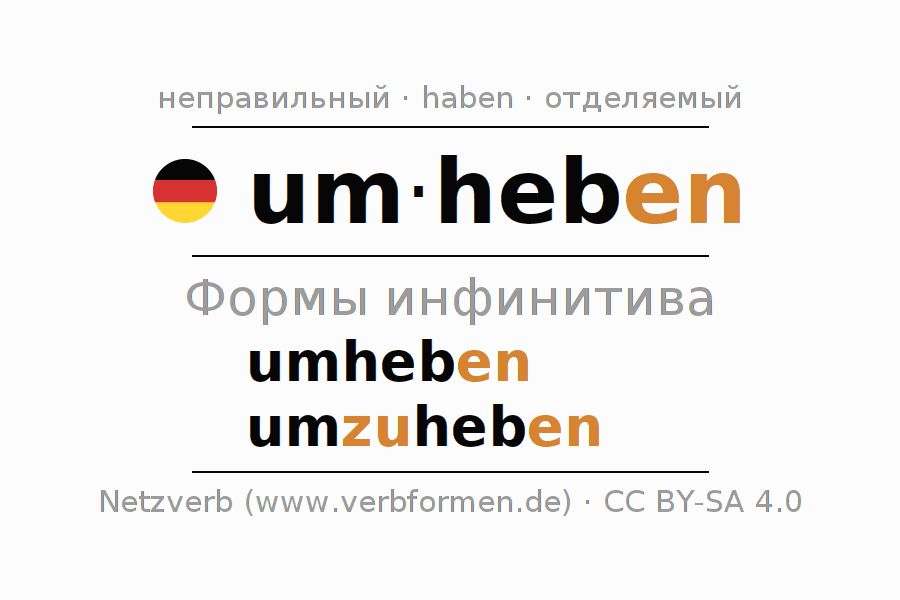Этот глагол umheben полностью спрягается во всех лицах и числах Инфинитив Презенс Перфект.