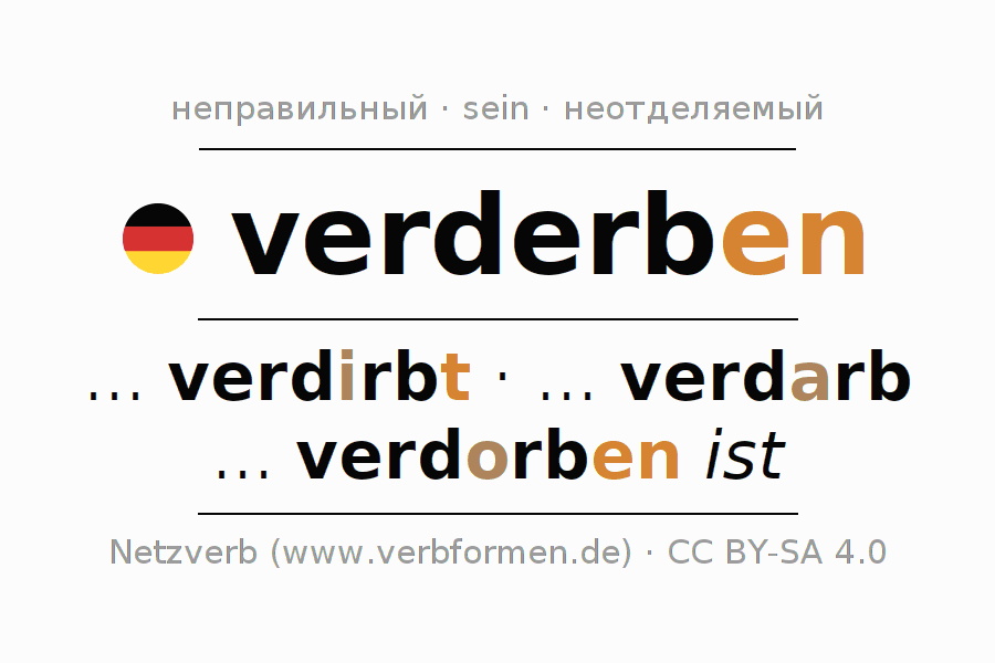Этот глагол verderben (ist) полностью спрягается во всех лицах и числах Инфинитив Презенс Перфект.