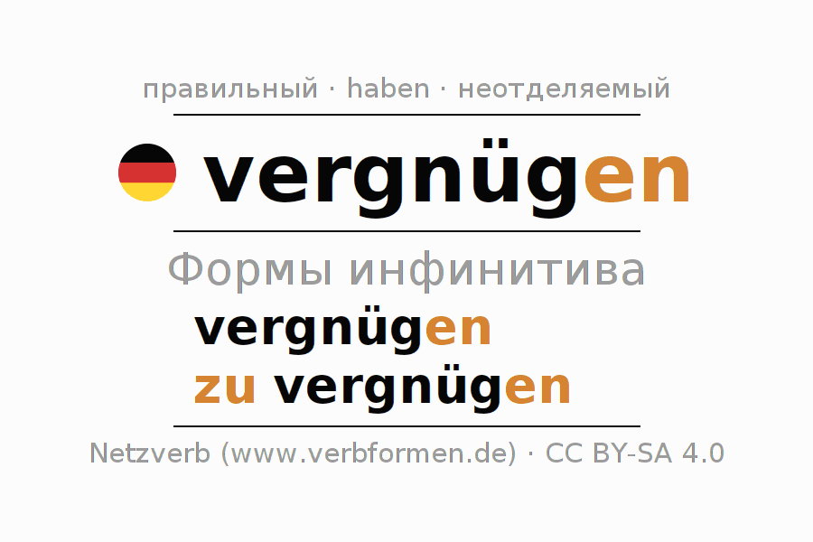 Этот глагол vergnügen полностью спрягается во всех лицах и числах Инфинитив Презенс Перфект.
