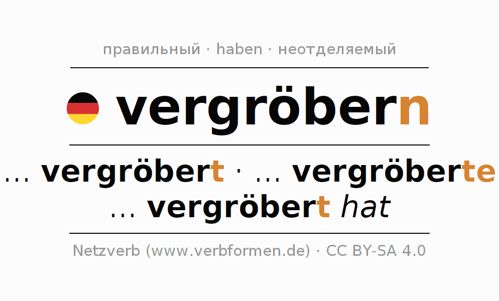 Этот глагол vergröbern полностью спрягается во всех лицах и числах Инфинитив Презенс Перфект.