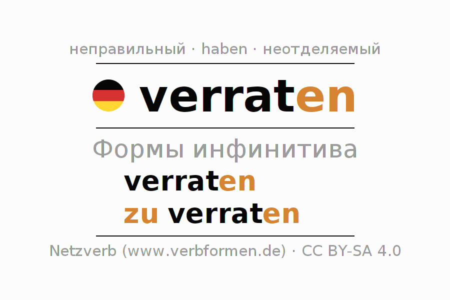 Этот глагол verraten полностью спрягается во всех лицах и числах Инфинитив Презенс Перфект.
