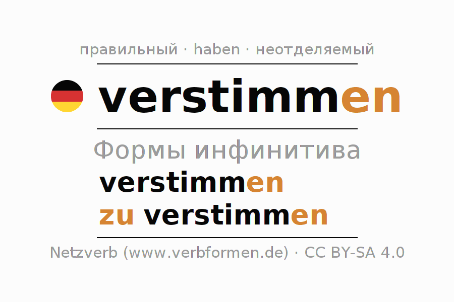 Этот глагол verstimmen (hat) полностью спрягается во всех лицах и числах Инфинитив Презенс Перфект.