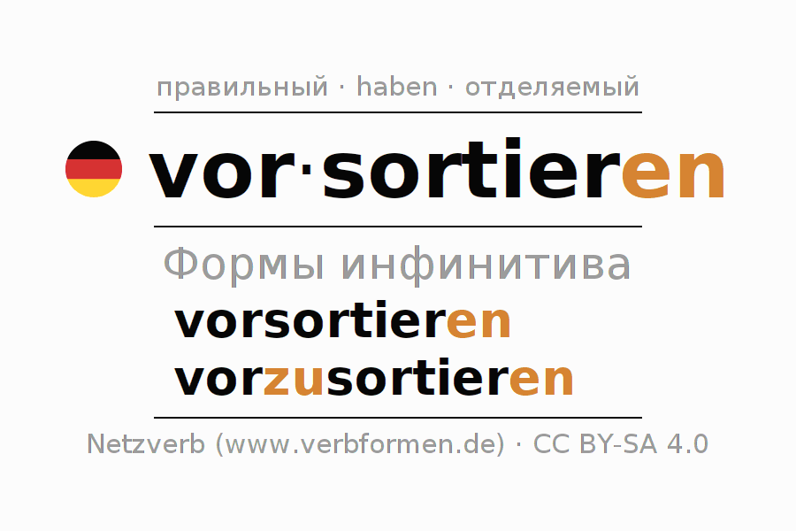 - Образование Инфинитив vorsortieren