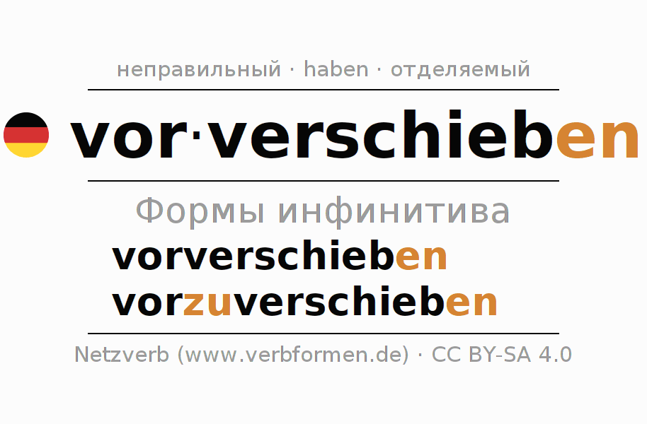 Этот глагол vorverschieben полностью спрягается во всех лицах и числах Инфинитив Презенс Перфект.