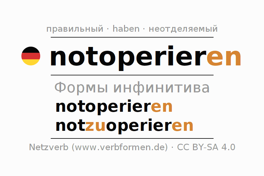 Этот глагол notoperieren полностью спрягается во всех лицах и числах Инфинитив Презенс Перфект.