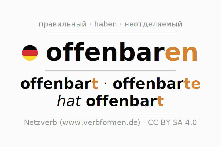 Этот глагол offenbaren полностью спрягается во всех лицах и числах Инфинитив Презенс Перфект.