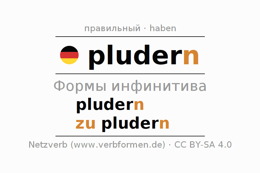 Этот глагол pludern полностью спрягается во всех лицах и числах Инфинитив Презенс Перфект.