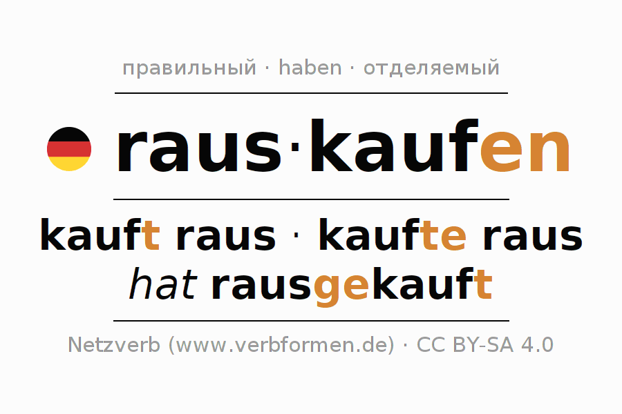 Этот глагол rauskaufen полностью спрягается во всех лицах и числах Инфинитив Презенс Перфект.