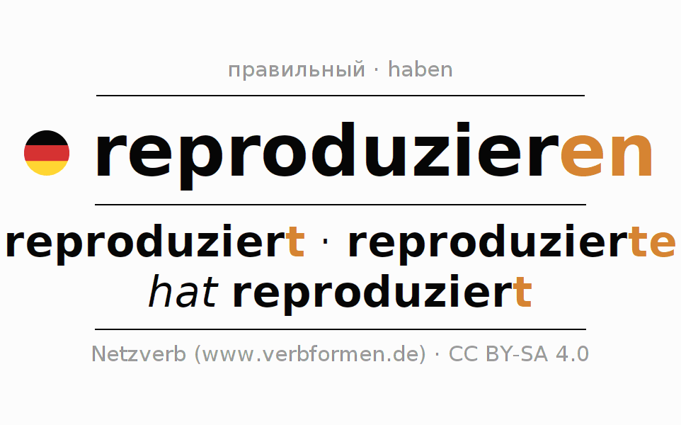 Этот глагол reproduzieren полностью спрягается во всех лицах и числах Инфинитив Презенс Перфект.