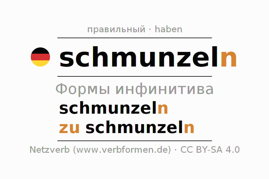 Этот глагол schmunzeln полностью спрягается во всех лицах и числах Инфинитив Презенс Перфект.