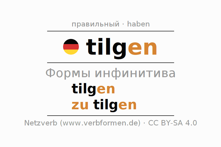 Этот глагол tilgen полностью спрягается во всех лицах и числах Инфинитив Презенс Перфект.
