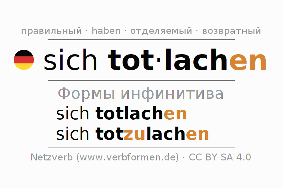Этот глагол sich totlachen полностью спрягается во всех лицах и числах Инфинитив Презенс Перфект.