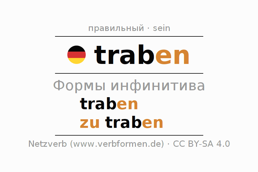 Этот глагол traben полностью спрягается во всех лицах и числах Инфинитив Презенс Перфект.