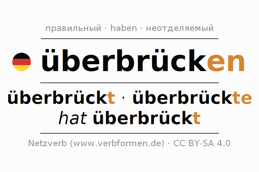 Этот глагол überbrücken полностью спрягается во всех лицах и числах Инфинитив Презенс Перфект.