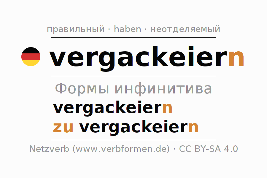 Этот глагол vergackeiern полностью спрягается во всех лицах и числах Инфинитив Презенс Перфект.