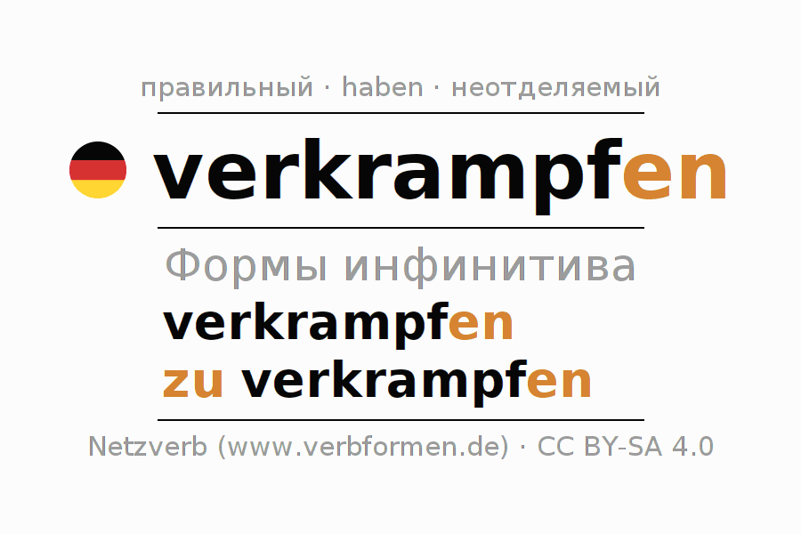Этот глагол verkrampfen полностью спрягается во всех лицах и числах Инфинитив Презенс Перфект.