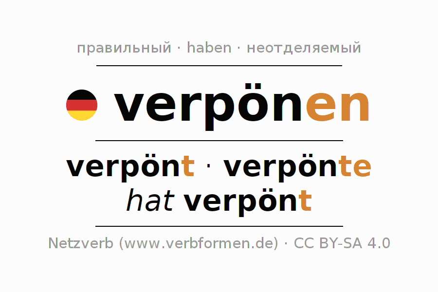 Этот глагол verpönen полностью спрягается во всех лицах и числах Инфинитив Презенс Перфект.