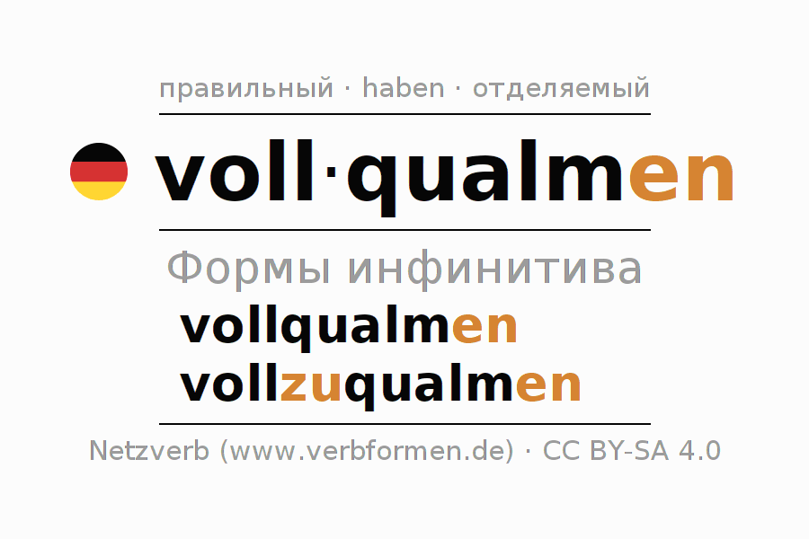 Этот глагол vollqualmen полностью спрягается во всех лицах и числах Инфинитив Презенс Перфект.