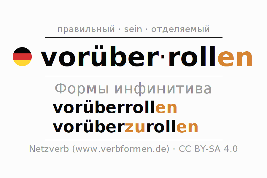 - Образование Инфинитив vorüberrollen