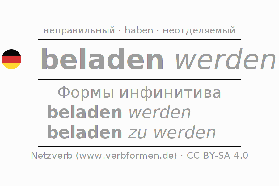 - Образование Инфинитив beladen