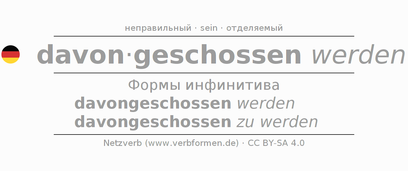 Этот глагол davonschießen полностью спрягается во всех лицах и числах Инфинитив Презенс Перфект.
