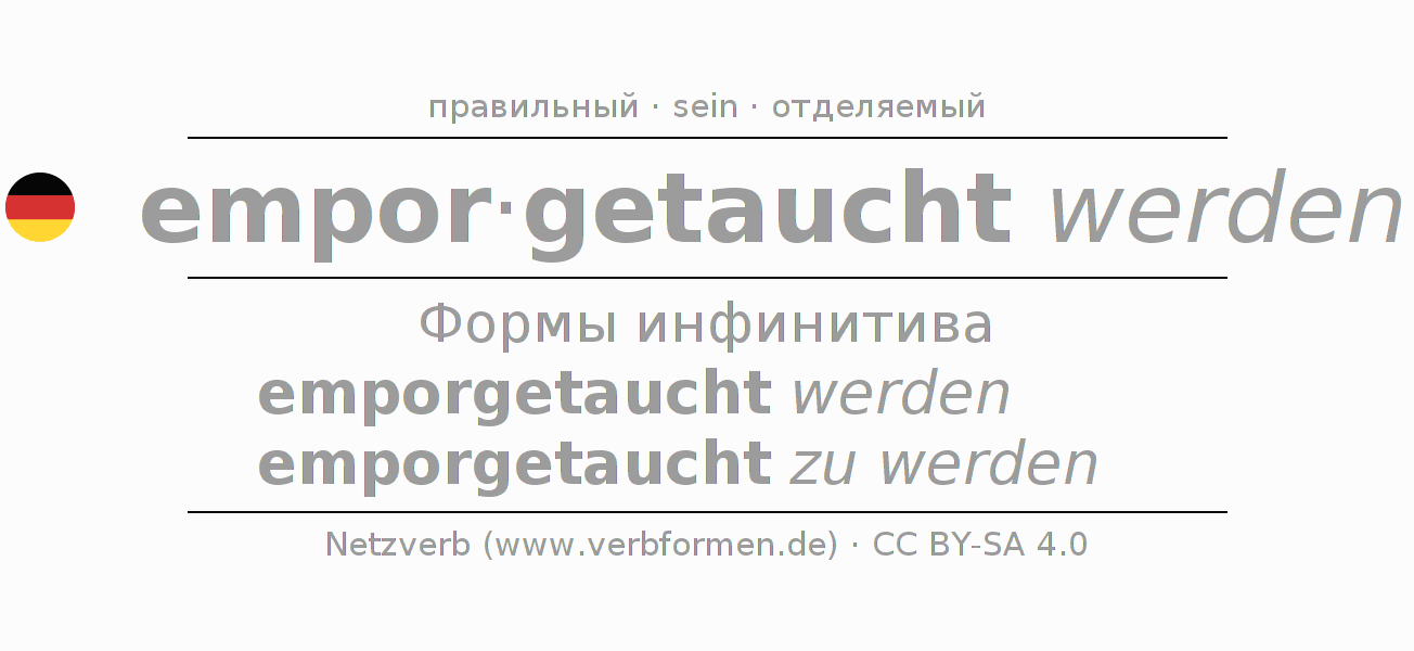 Этот глагол emportauchen полностью спрягается во всех лицах и числах Инфинитив Презенс Перфект.