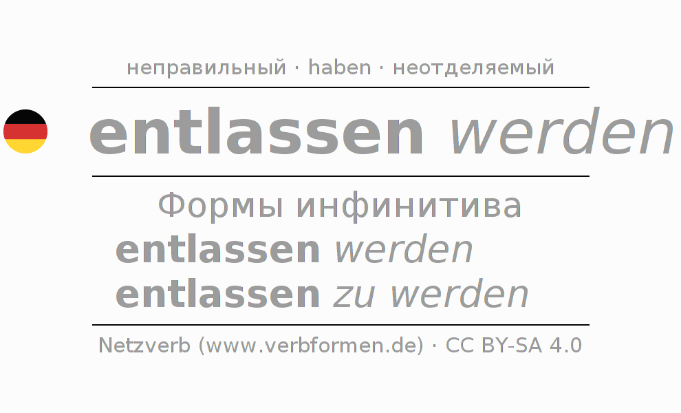 Этот глагол entlassen полностью спрягается во всех лицах и числах Инфинитив Презенс Перфект.