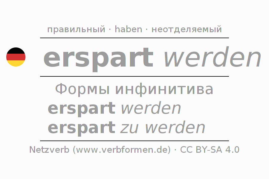 Этот глагол ersparen полностью спрягается во всех лицах и числах Инфинитив Презенс Перфект.