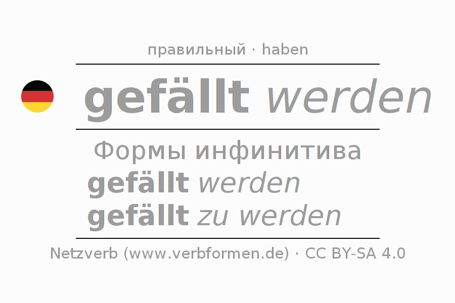 Спряжение fällen в Инфинитив Презенс Перфект основная форма Пассив с werden: gefällt werden, gefällt zu werden.Образование этих форм происходит по определённым грамматическим правилам. Так же спрягаются простые глагольные формы fällen в Инфинитив. Kомментарии ☆
