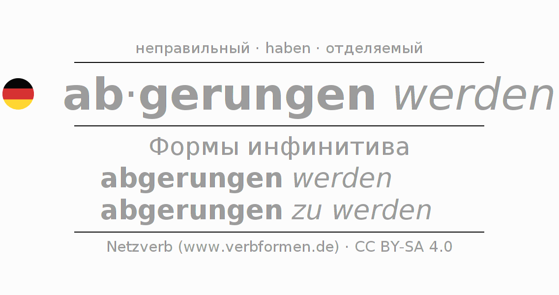 Этот глагол abringen полностью спрягается во всех лицах и числах Инфинитив Презенс Перфект.