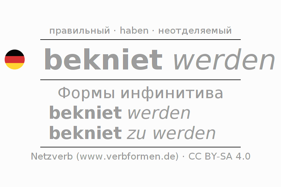 Этот глагол beknien полностью спрягается во всех лицах и числах Инфинитив Презенс Перфект.