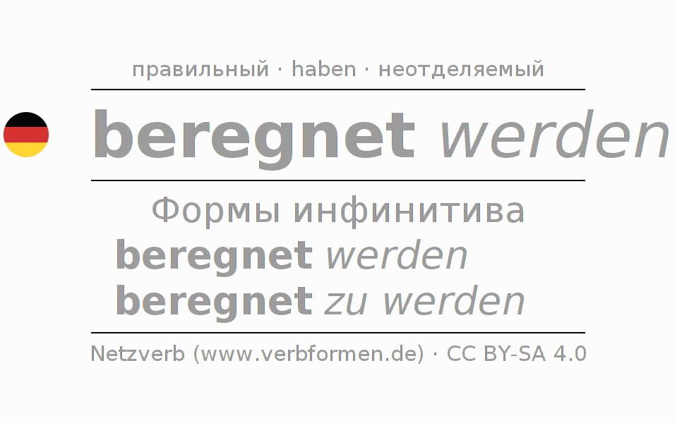 Этот глагол beregnen полностью спрягается во всех лицах и числах Инфинитив Презенс Перфект.