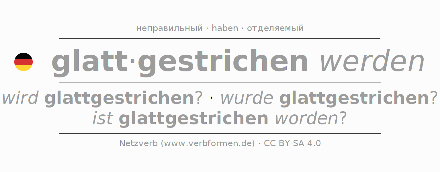 Этот глагол glattstreichen полностью спрягается во всех лицах и числах Инфинитив Презенс Перфект.