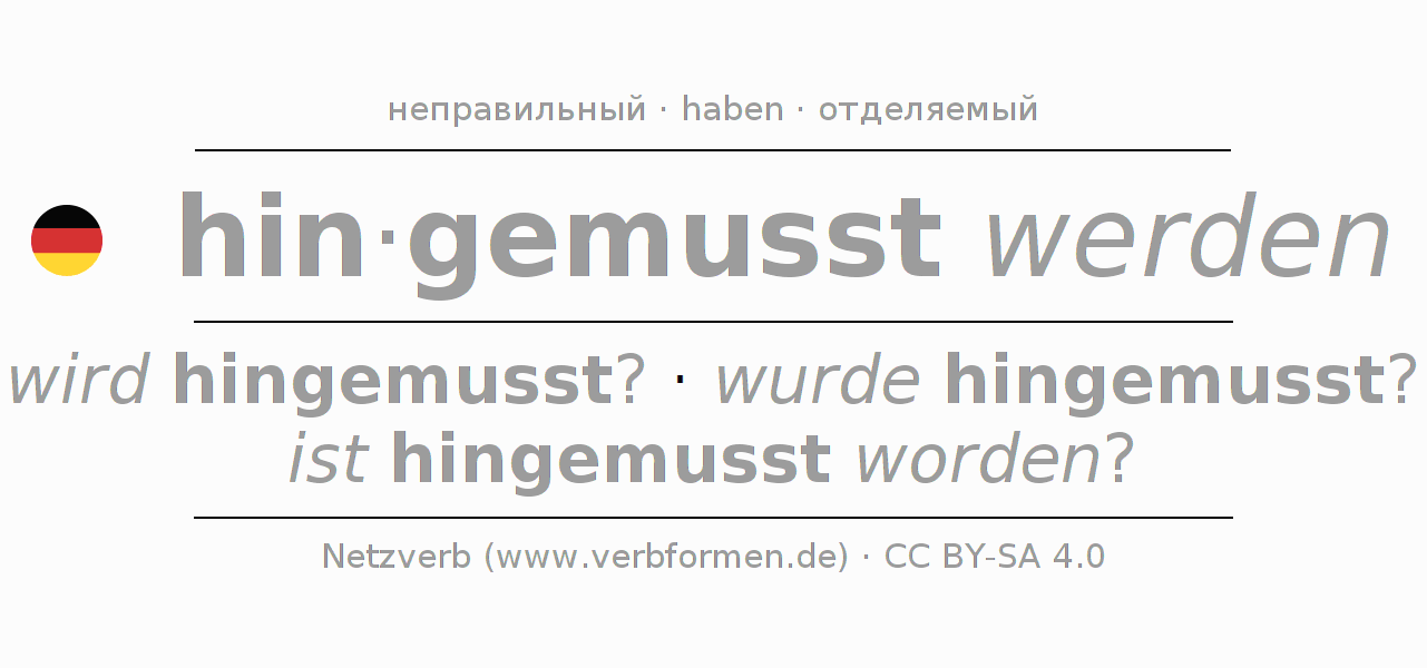 Этот глагол hinmüssen полностью спрягается во всех лицах и числах Инфинитив Презенс Перфект.