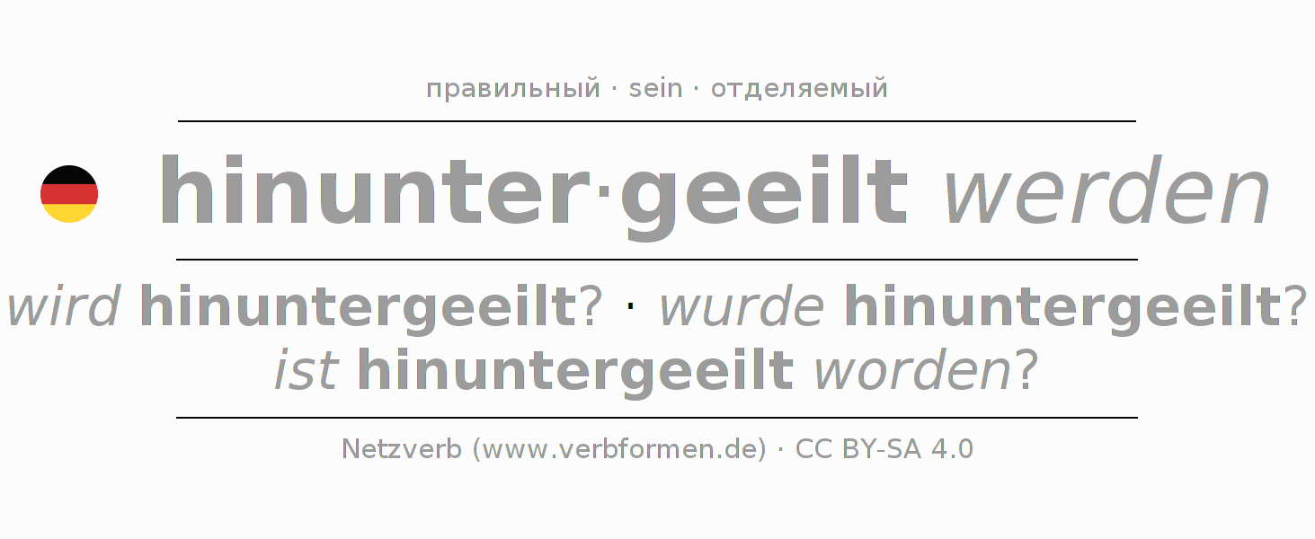 - Образование Партицип hinuntereilen