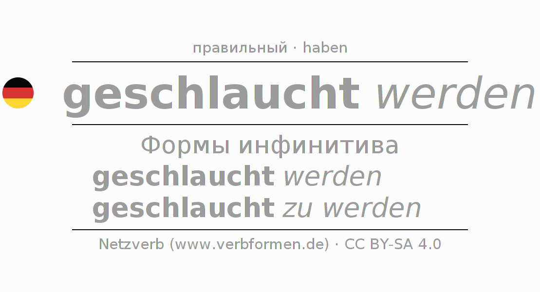 Этот глагол schlauchen полностью спрягается во всех лицах и числах Инфинитив Презенс Перфект.