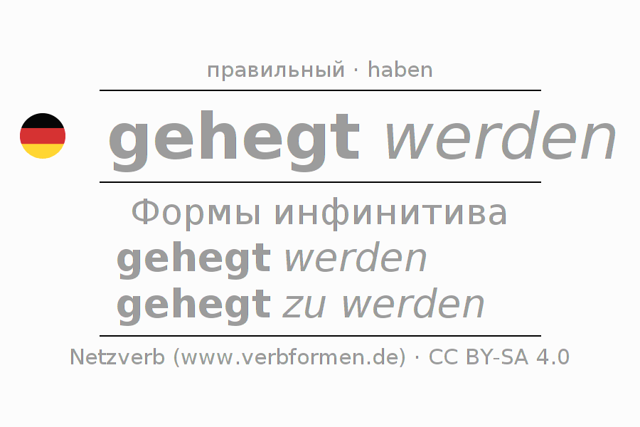 Этот глагол hegen полностью спрягается во всех лицах и числах Инфинитив Презенс Перфект.