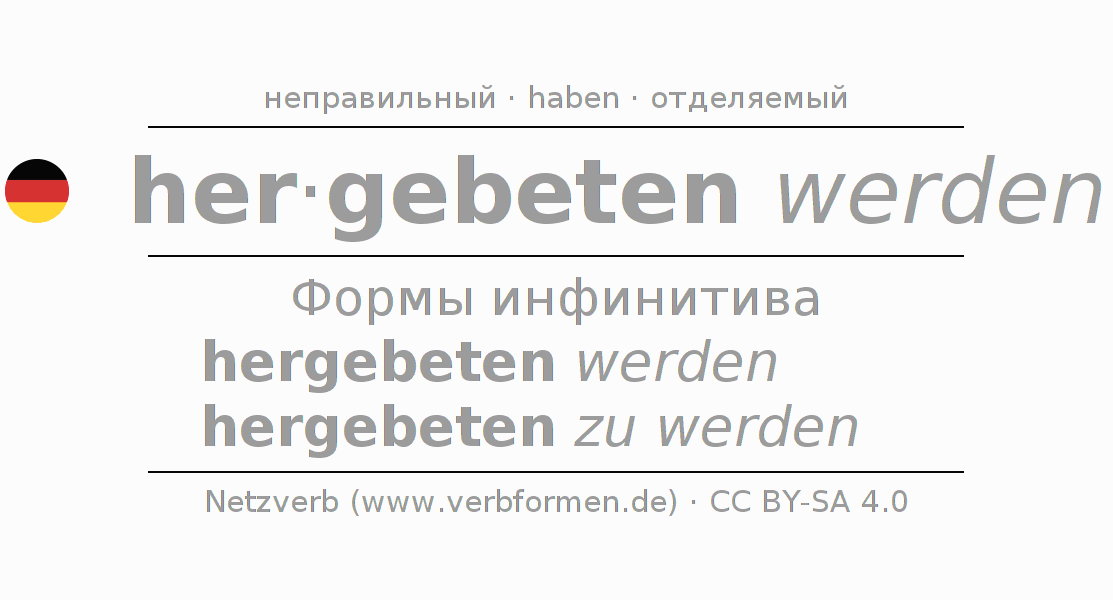 Этот глагол herbitten полностью спрягается во всех лицах и числах Инфинитив Презенс Перфект.