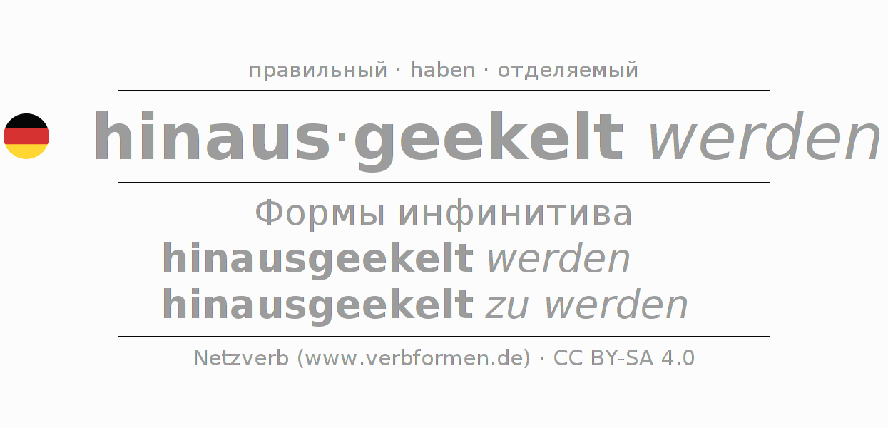 Этот глагол hinausekeln полностью спрягается во всех лицах и числах Инфинитив Презенс Перфект.