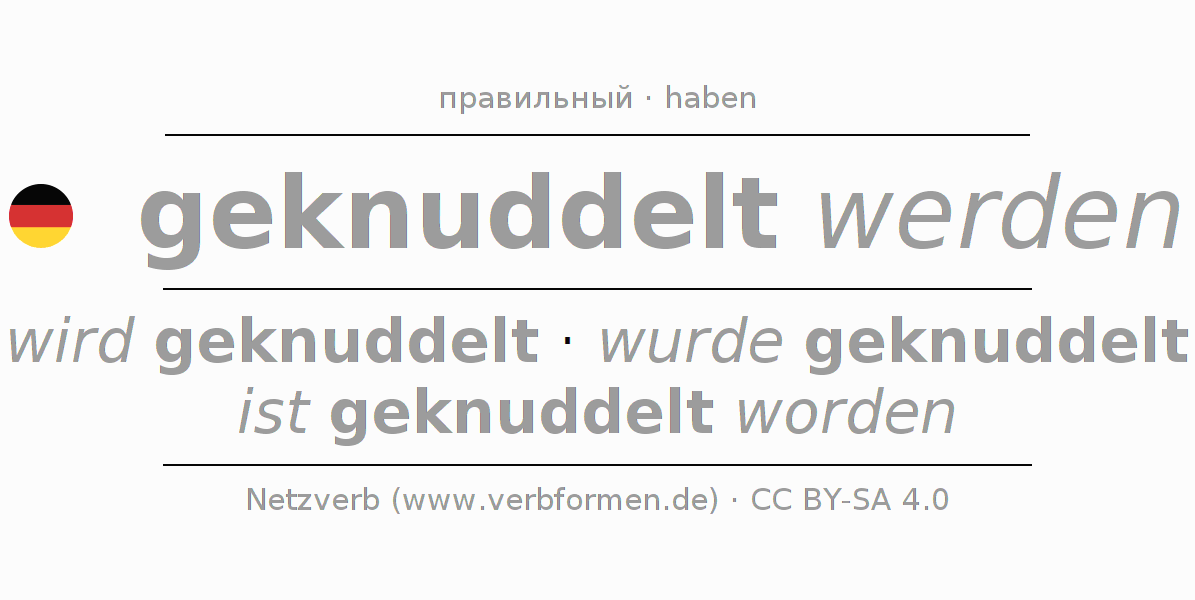 Этот глагол knuddeln полностью спрягается во всех лицах и числах Инфинитив Презенс Перфект.